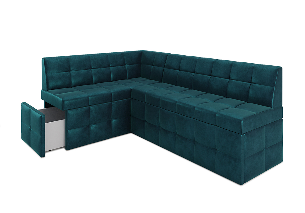 —Кухонный угловой диван дельфин Атлантис вельвет сине-зеленый