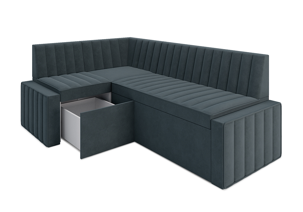 —Кухонный угловой диван дельфин Вермут велюр серо-синий