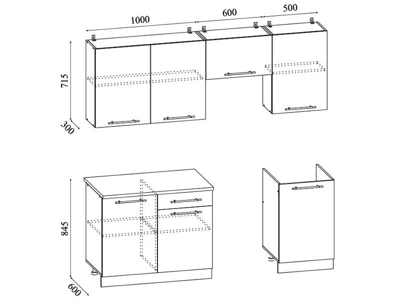 • Глубина шкафов: Верхние 300 мм/Нижние 600 мм/Глубина столешницы 600 мм