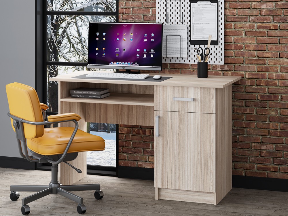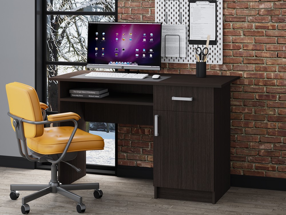 Сейчас редко встретишь обычный письменный стол в квартире. Даже детям родители стараются покупать не классический стол для письма, а современные аналоги футуристического дизайна. На самом деле при правильном выборе стола для письма классического дизайна вы не только приобразите комнату, в которой он будет стоять, но и получите модель, которая не один год будет выполнять свое предназначение. Письменный стол ПС-01 это классический вариант прямоугольного деревянного стола, изготавливаемого в трёх расцветках: орех855, венге и белфорт. Вы можете выбрать письменный стол ПС- 01 более подходящего к вашему интерьеру цвета. Письменный стол ПС-01 подойдет и младшему школьнику, и подростку и взрослому, надо лишь правильно подобрать каждому стул. Письменный стол ПС-01 имеет выкатной ящик для мелочей и тумбу с двумя полками, а также полку под столешницей, всё это позволить организовать хранение письменных принадлежностей в порядке.